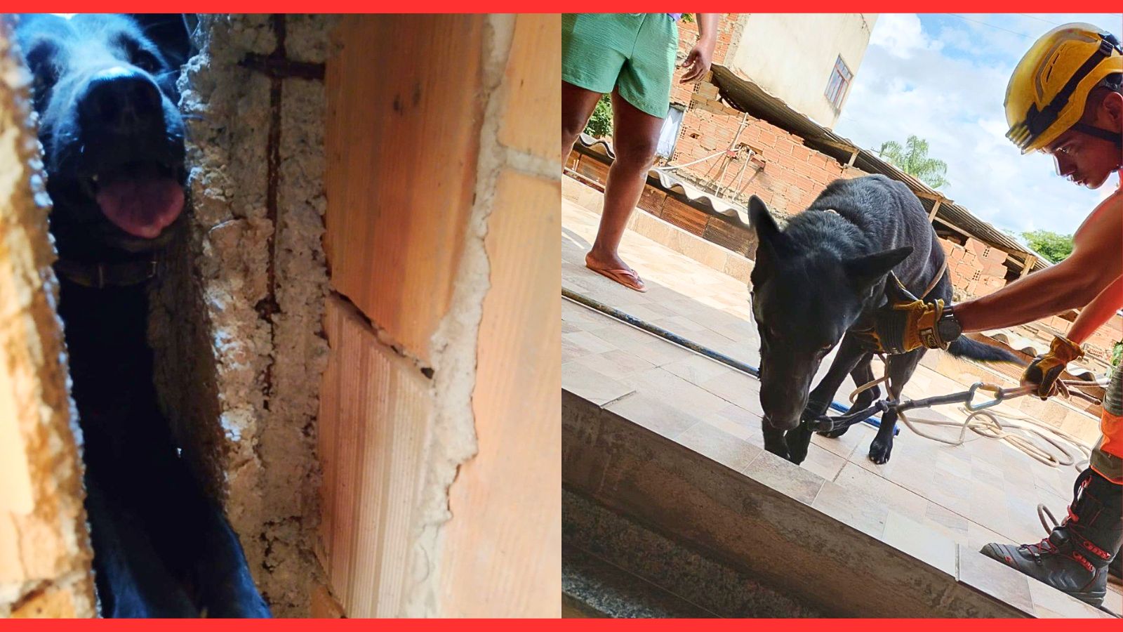 Quando os bombeiros chegaram ao local, o animal aparentava cansaço por ter permanecido preso por várias horas. Para conseguir acessar o ponto onde ele estava, os militares precisaram romper um dos lados de uma parede.