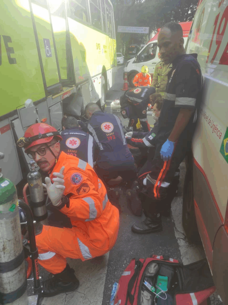 Com o impacto, o motociclista foi arremessado para debaixo do coletivo. Ele chegou a ser resgatado com vida pelos bombeiros, mas sofreu uma parada cardiorrespiratória durante o atendimento. Apesar das tentativas de reanimação, o óbito foi confirmado por equipes do Samu.