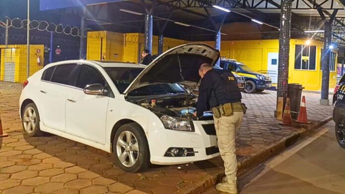 De acordo com a corporação, a equipe abordou um Chevrolet Cruze e, durante a fiscalização, identificou indícios de adulteração no automóvel. Diante da suspeita, os policiais aplicaram técnicas avançadas de identificação veicular, que confirmaram se tratar de um carro furtado.
