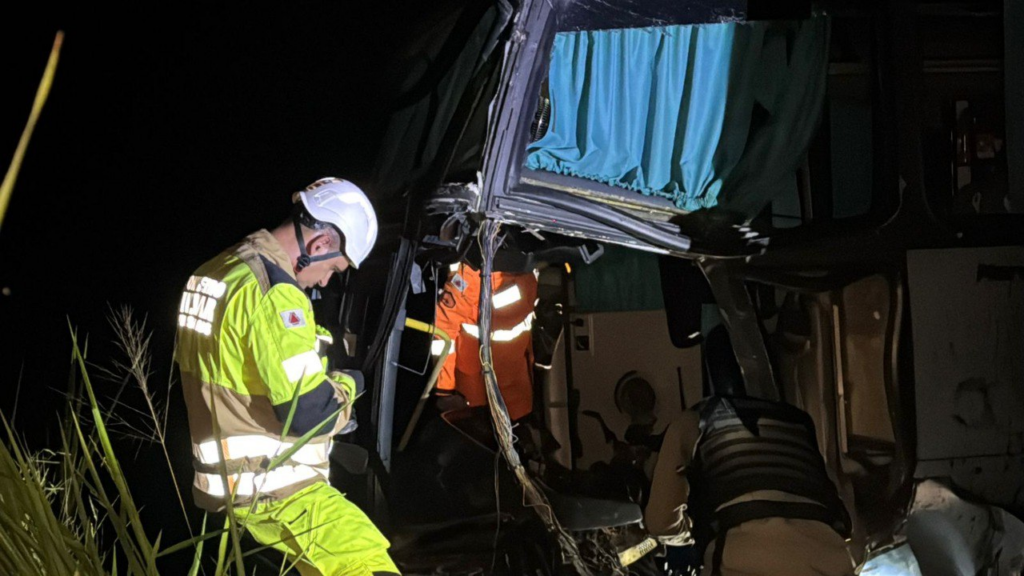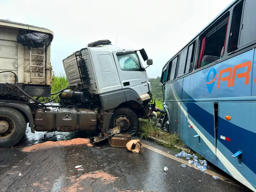 Um acidente envolvendo um ônibus de turismo e uma carreta matou uma pessoa e deixou outras 20 feridas na BR-356, próximo ao distrito de Vermelho, em Muriaé (na Zona da Mata).