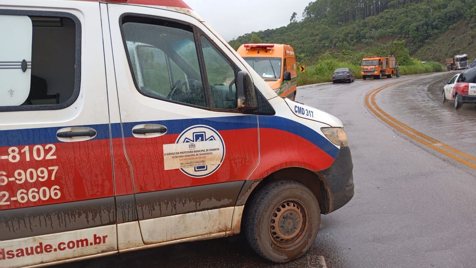 Com a pista molhada devido à chuva, no começo da tarde desta quarta (21/1), um acidente aconteceu na BR-356, Serra da Santa, em Itabirito (MG), e envolveu uma ambulância da Unidade de Pronto Atendimento (UPA) itabiritense e um Toyota Corolla.