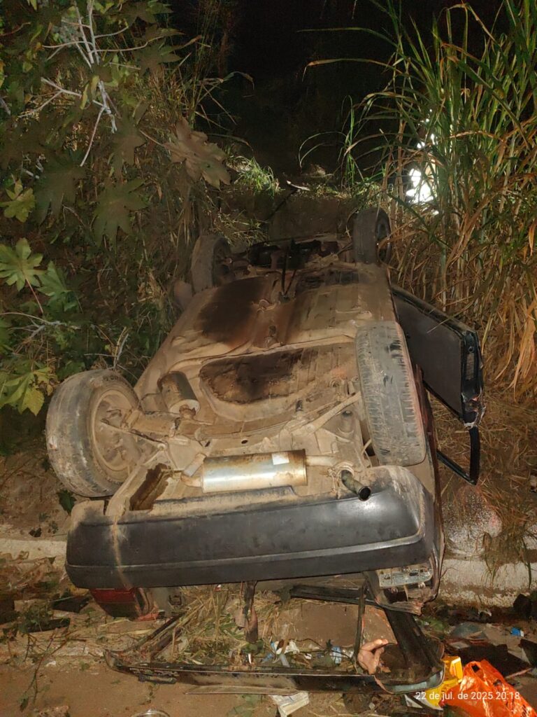 O carro ficou com as rodas para cima - Foto cedida ao Radar Geral