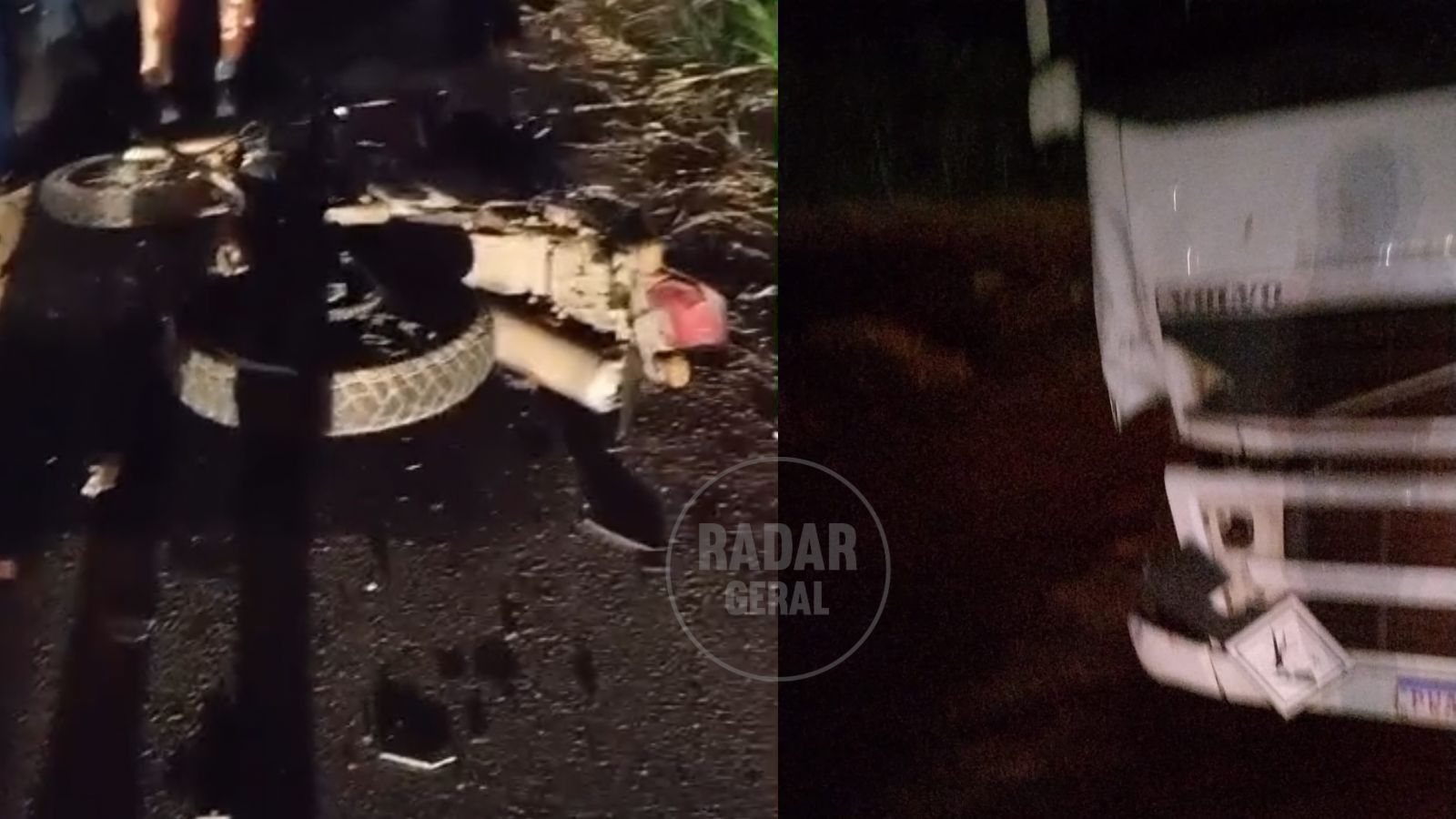 “O condutor da moto invadiu a contramão e bateu na carreta da VP Transportes. Morreu na hora!”, disse ao Radar Geral uma testemunha.