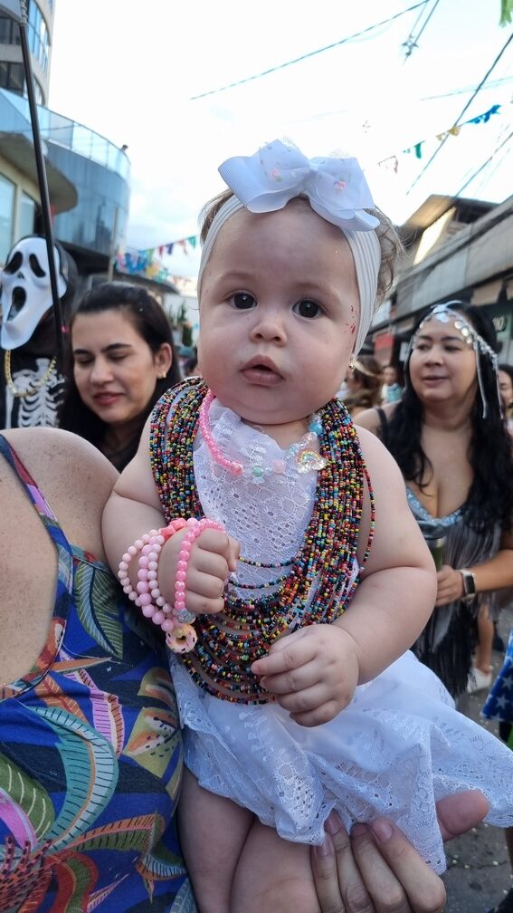 “Hoje é o 1º dia que venho à rua. A festa atual é melhor que antigamente. Antes era bem mais cheio, mas ‘não agregava nada’. As pessoas vinham ‘só pra beber cachaça’. Hoje é mais família. Um ambiente muito mais familiar, onde se pode, por exemplo, conversar”.