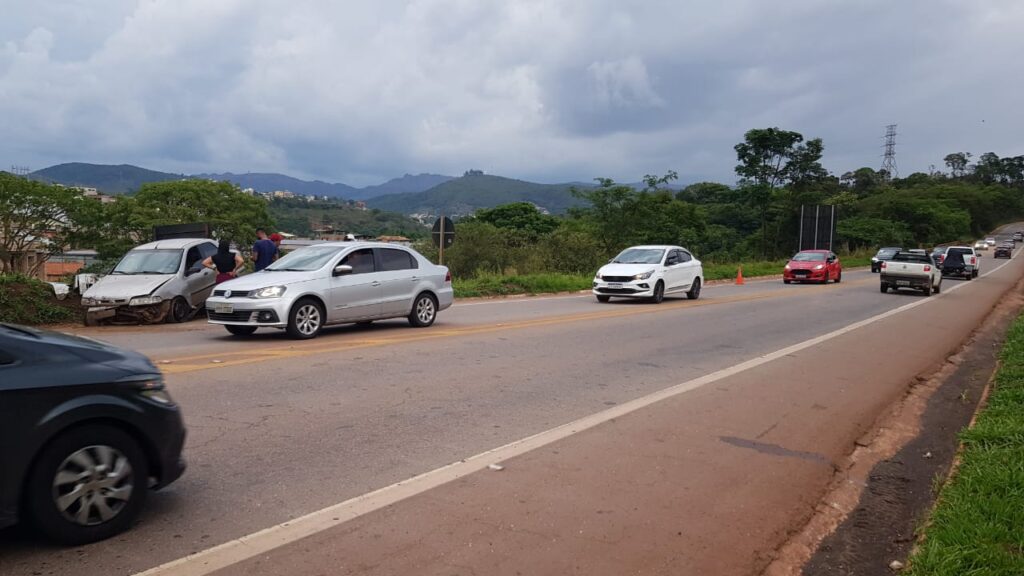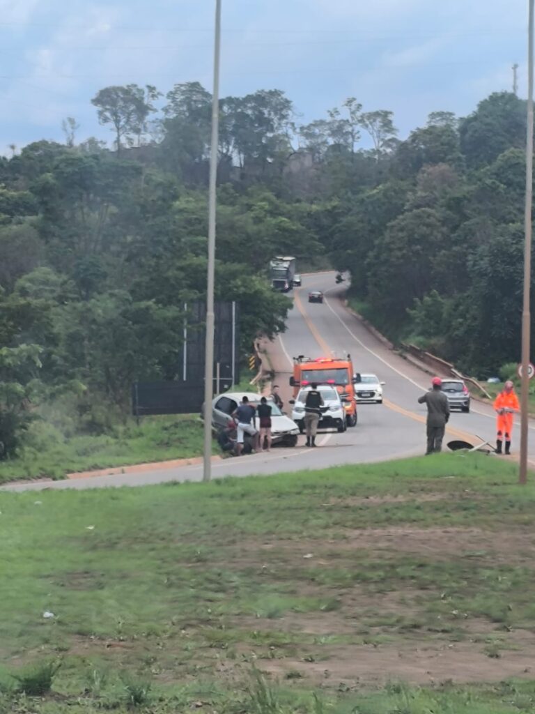 O carro, que tem placa de Itabirito, chegou a subir no canteiro lateral – onde ficou.
