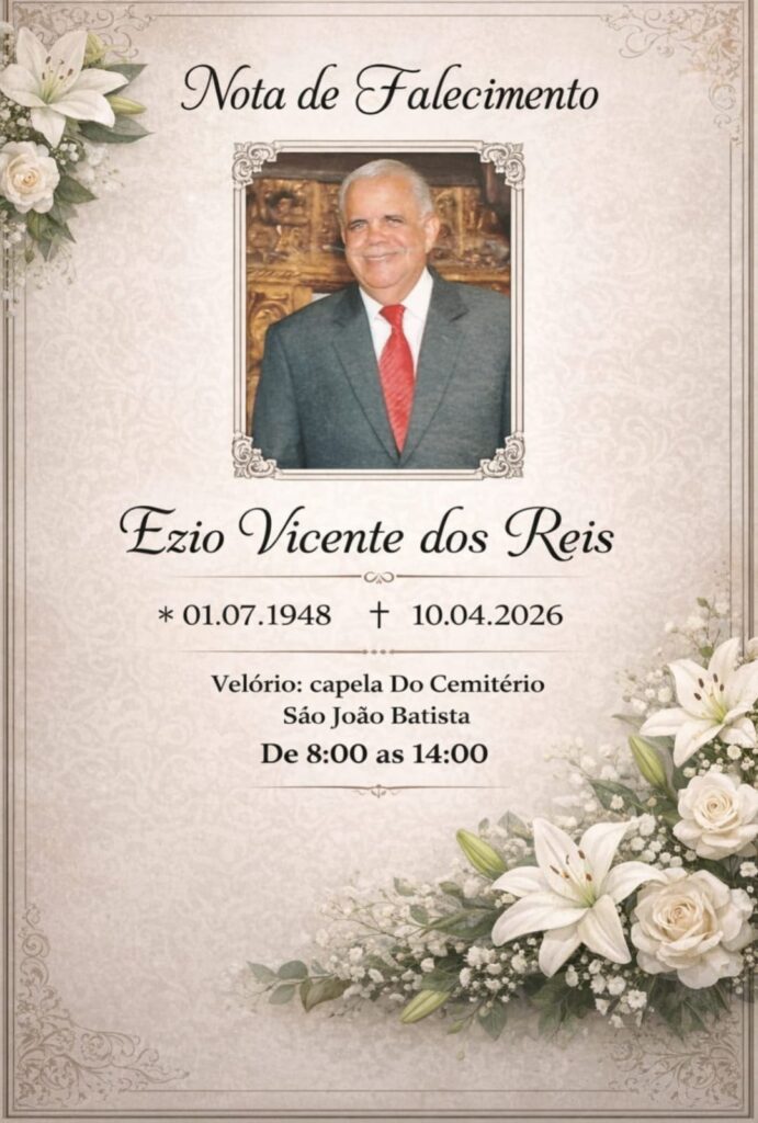 ITABIRITO (MG) — Neste sábado (11/4), a capela do Cemitério São João Batista ficou lotada durante o velório do senhor Ezio Vicente dos Reis.
