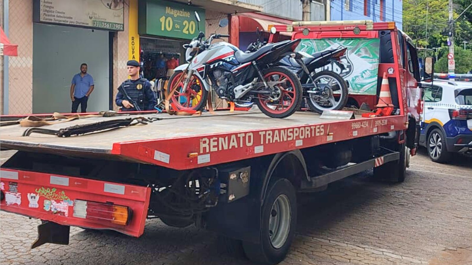 Durante a blitz, duas motocicletas foram removidas para o pátio credenciado. Segundo a corporação, os veículos apresentavam diversas irregularidades, sendo a principal delas a placa levantada, o que configura infração grave, pois dificulta a identificação da motocicleta.