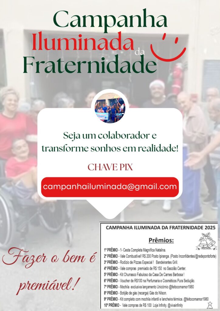 Luciano Senem contou que a Campanha Iluminada da Fraternidade existe há 8 anos e leva, por exemplo, cestas básicas e natalinas não somente para a mesma Casa de Repouso, mas também para a Casa Lar, além de pessoas carentes de Itabirito (como em São Gonçalo do Bação e Quinta dos Inconfidentes) e Ouro Preto (incluindo Antônio Pereira e Cachoeira do Campo).