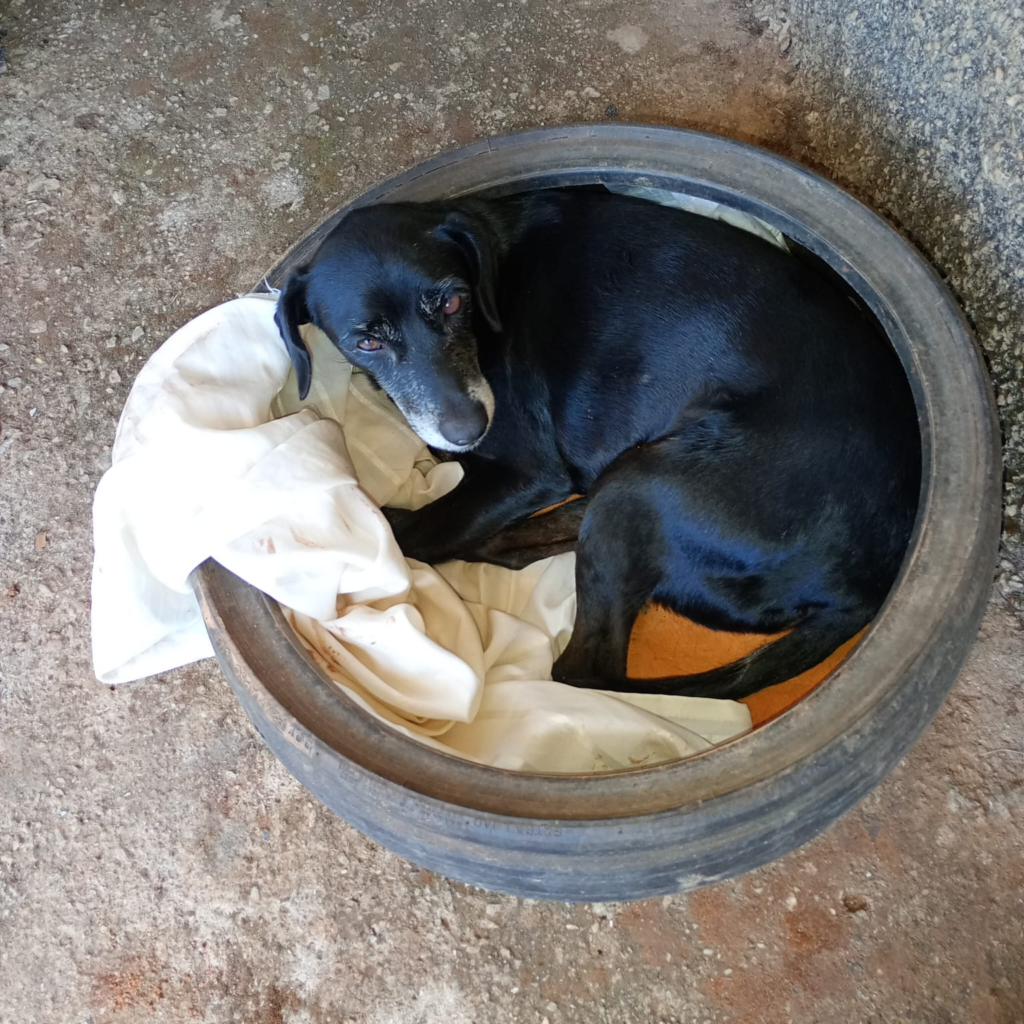 De acordo com a tutora, Eneclaudia Silva, o animal é idoso e apresenta dificuldade de locomoção, pois é manca.