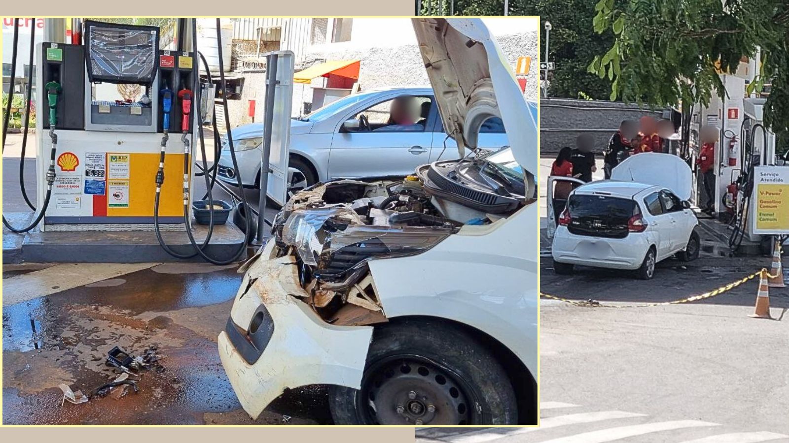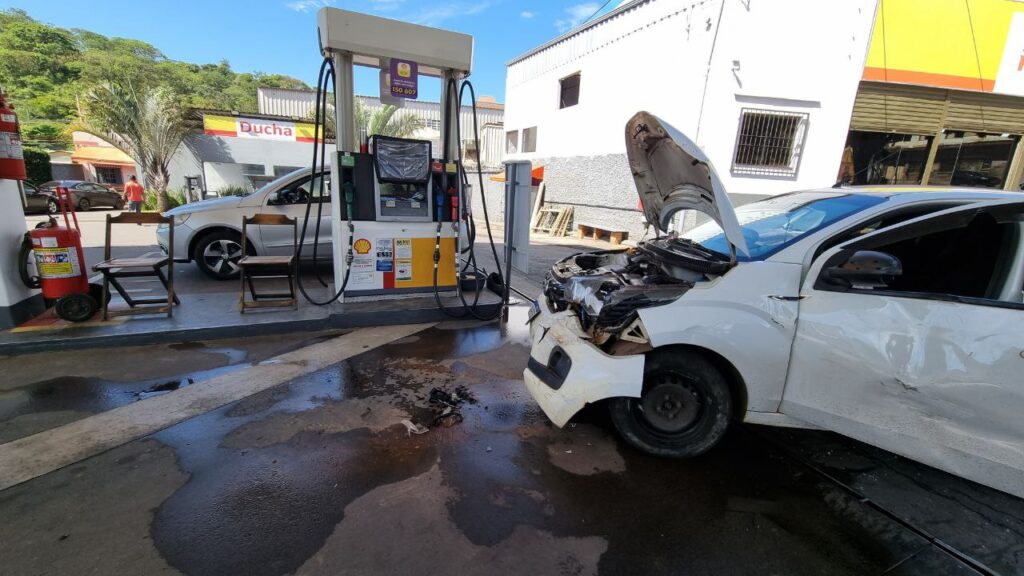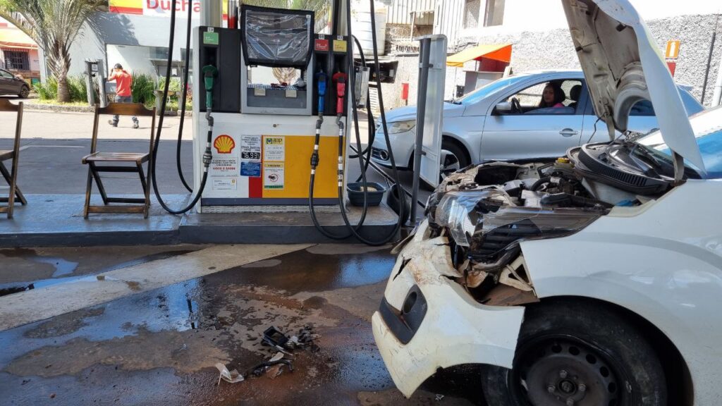 O Parati estava na fila para abastecer quando houve o impacto. “Foi muito forte. O susto foi grande”, disse o dono do carro atingido.
