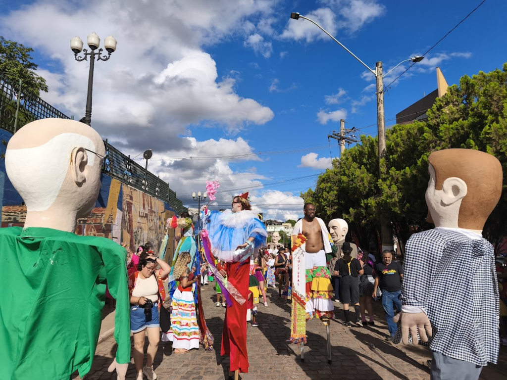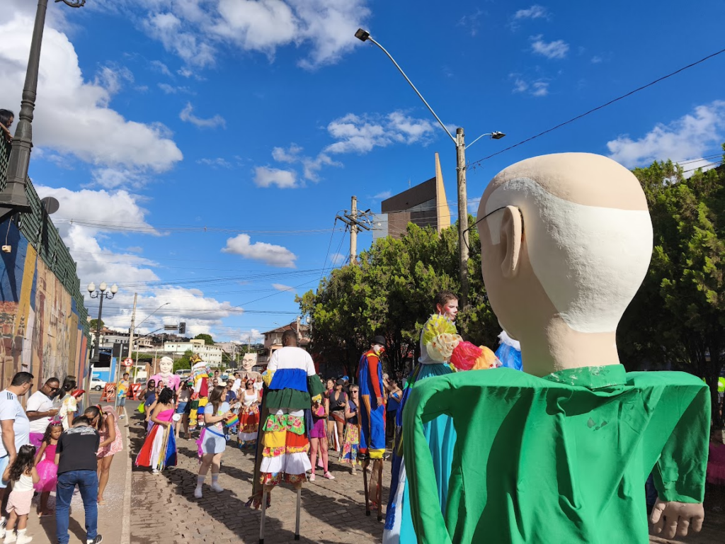 Por volta das 15h, a bateria e os bonecões animaram o público na Avenida Farid Rahme, no Centro da cidade, nas proximidades do Churrasquinho da Aninha (Super Churras).