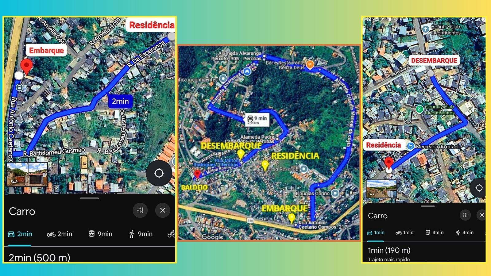 1 – O ponto onde a criança desembarcou fica a 190 metros da residência dela. E este ponto (de acordo com informações que ele recebeu de sua mãe monitora) frequentemente é utilizado para embarque pela mesma aluna. Já o ponto em que a menina “pegou” o escolar fica a 500 metros da casa.