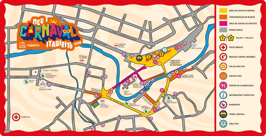 A Prefeitura de Itabirito divulgou a programação completa do Meu Carnaval 2026, que será realizado entre quarta (11/2) e terça (17/2).
