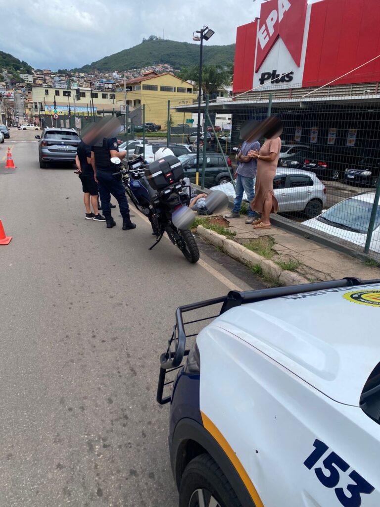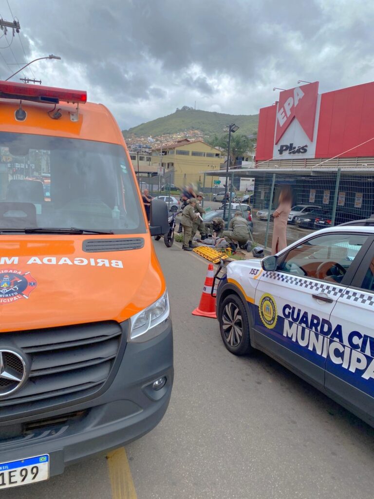 Um motociclista (de 26 anos) ficou com suspeita de fratura na perna direita após se envolver em acidente na manhã desta quarta (10/12), no cruzamento das ruas Emídio Quites e Maria Bernardina, no bairro de Lourdes, em Itabirito (MG).