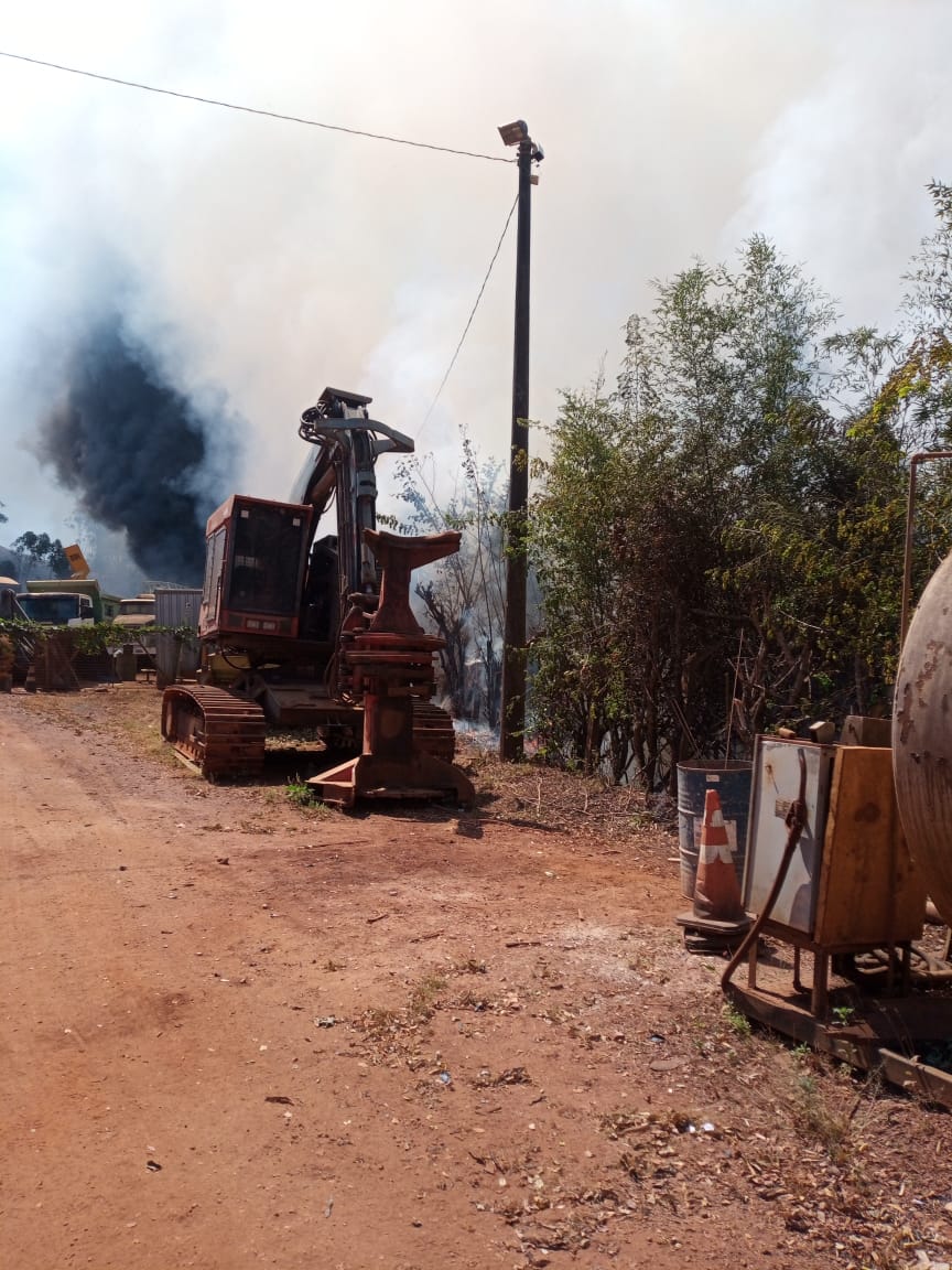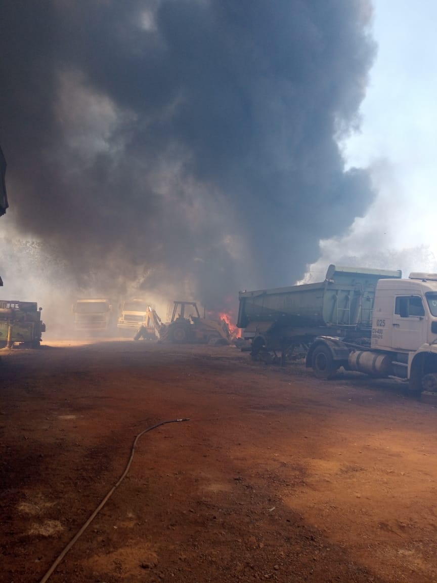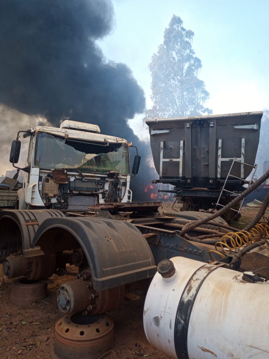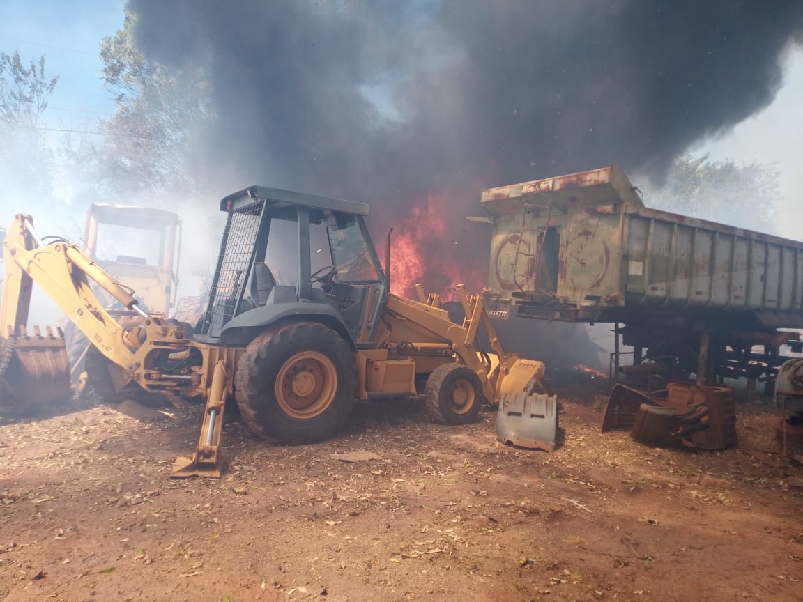 O incêndio danificou caminhões, tratores e carros da empresa. Aparentemente, parte (pelos menos) do maquinário não estava em uso.