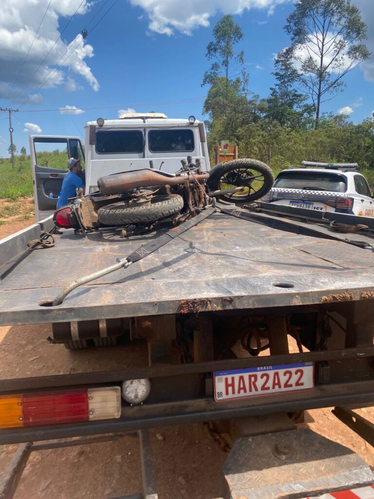 A moto foi removida pelo guincho. O caso foi registrado e segue para as providências da Polícia Civil.