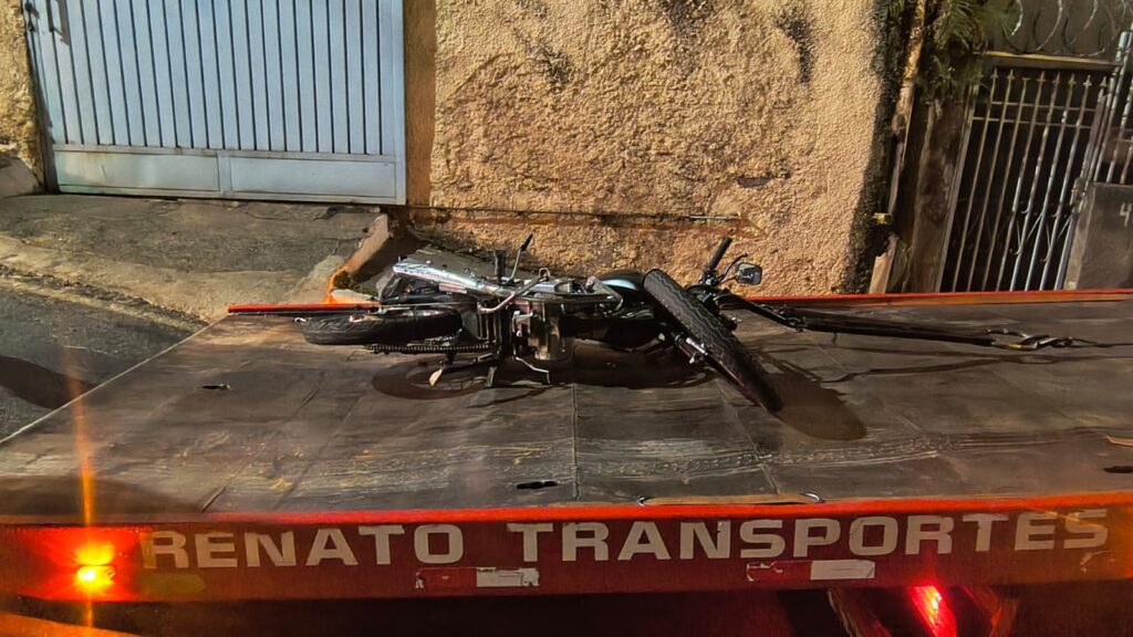 A moto ficou bastante comprometida, foi rebocada e, tendo como base a placa, vários autos de infração foram lavrados.