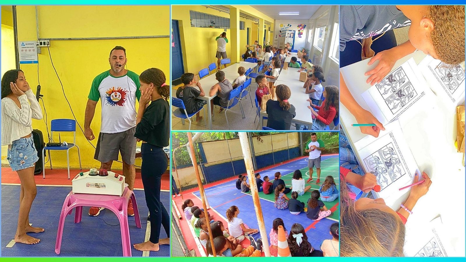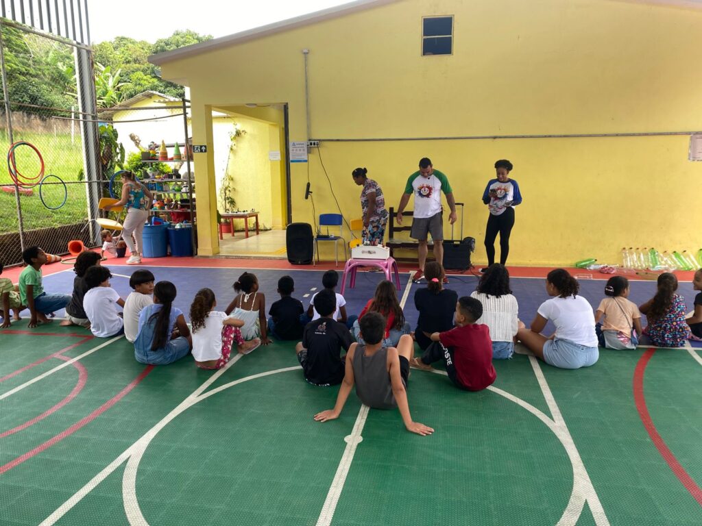 No 2º momento, o aprendizado foi reforçado por meio de atividades recreativas. Gincanas e um quiz no estilo “torta na cara” garantiram o engajamento dos pequenos, abordando temas como o reaproveitamento da água de forma leve e dinâmica.