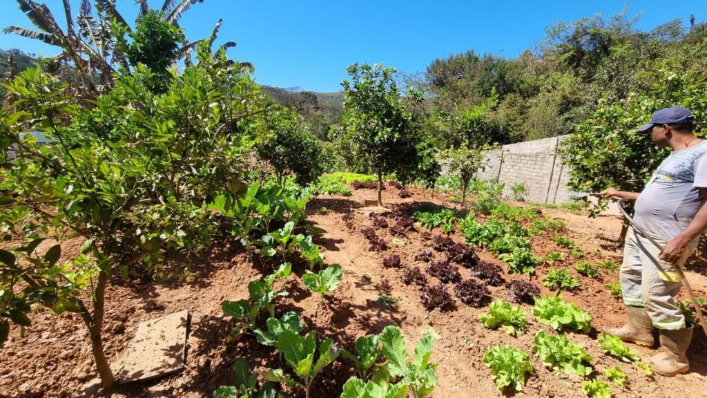Há ainda uma bela horta, galinhas e porcos.