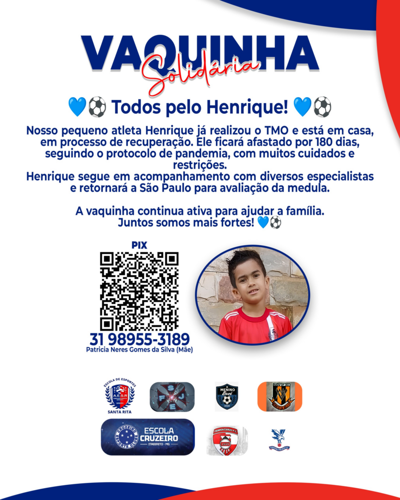 Um menino (de 10 anos) tem mobilizado familiares, amigos e a comunidade de Itabirito (MG) em uma corrente de solidariedade. Henrique Gomes Pereira enfrenta uma dura batalha pela vida e como forma de ampliar essa rede de apoio, será realizado na cidade o Campeonato Solidário de Futsal “Todos pelo Henrique”, com o objetivo de arrecadar fundos para o tratamento do garoto.