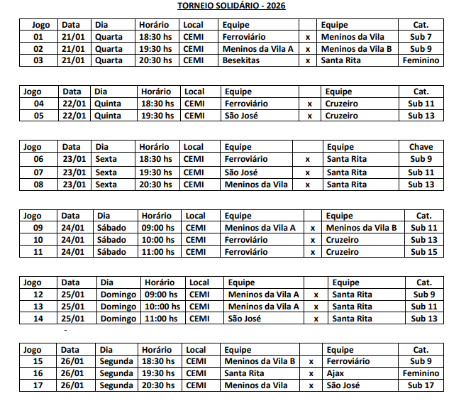O evento acontece entre os dias 21/1 e 7/2, a partir das 18h30, no Poliesportivo do Santa Rita. A competição é organizada por atletas dos projetos “Meninos da Vila FC” e “Escola de Esporte Santa Rita” (equipe em que Henrique é atleta) e contará com jogos das categorias de base e feminino.