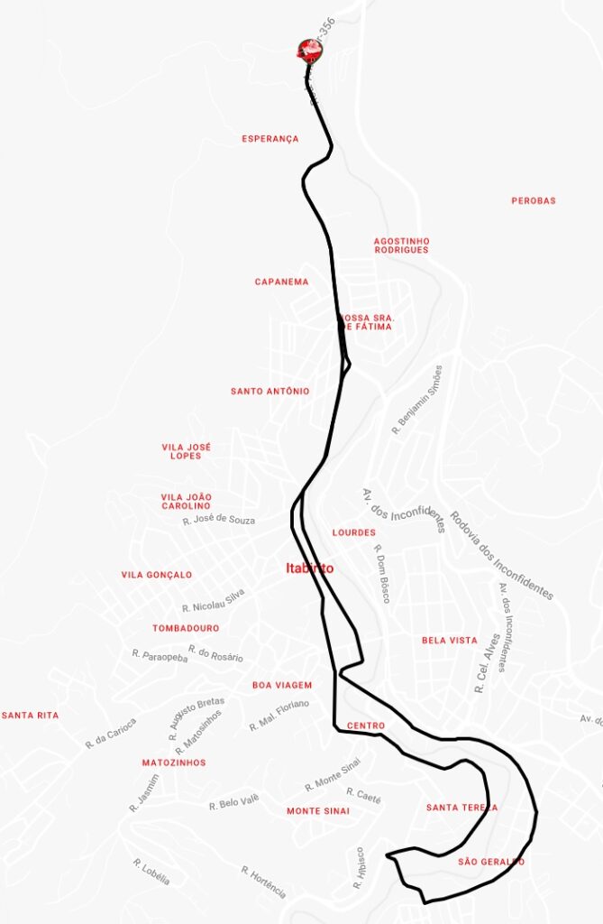 3 – Depois, passará pela entrada da Casa do Adolescente, atravessará a ponte na divisa com o Padre Adelmo, acessará a Avenida José Farid Rahme (passando pela Vila Alegre) até chegar à Praça da Estação (onde ficará alguns minutos).