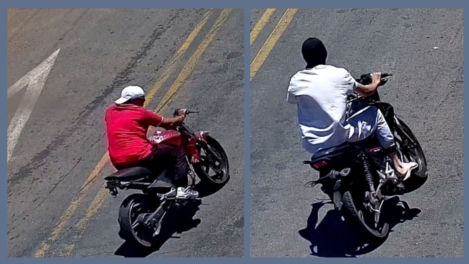O sistema de monitoramento do Centro de Operações da Prefeitura (COP) registrou as condutas de risco, confirmando que o condutor de uma das motos (a de cor vermelha) vestia camiseta também vermelha e usava apenas um boné branco com a aba para trás (sem o equipamento de segurança).