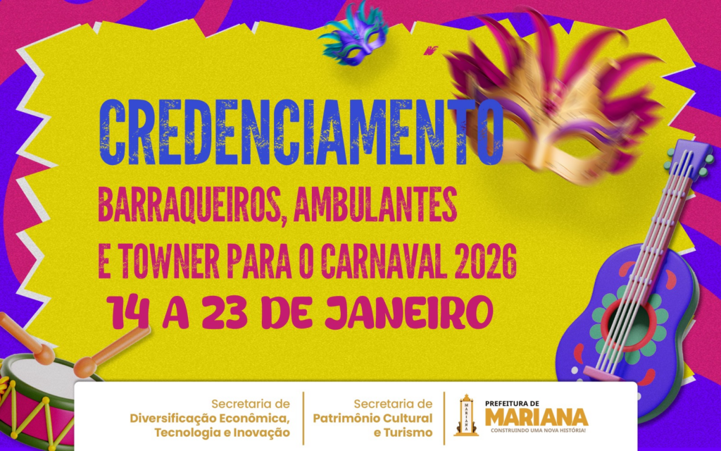 A Prefeitura de Mariana (MG) abriu chamamento público para o credenciamento de comerciantes interessados em atuar na venda de comidas e bebidas durante o Carnaval de 2026.