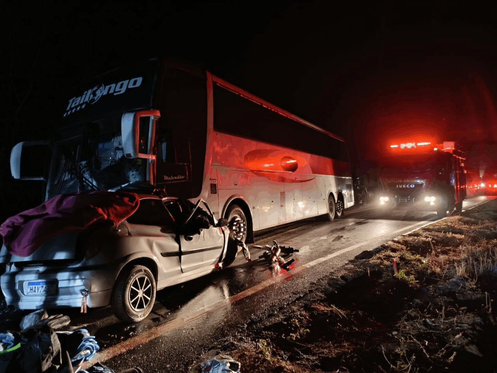 Cinco pessoas morreram em um grave acidente entre um carro de passeio e um ônibus, na noite desta segunda (28/7), na MGC-122, em Janaúba (Norte de Minas).