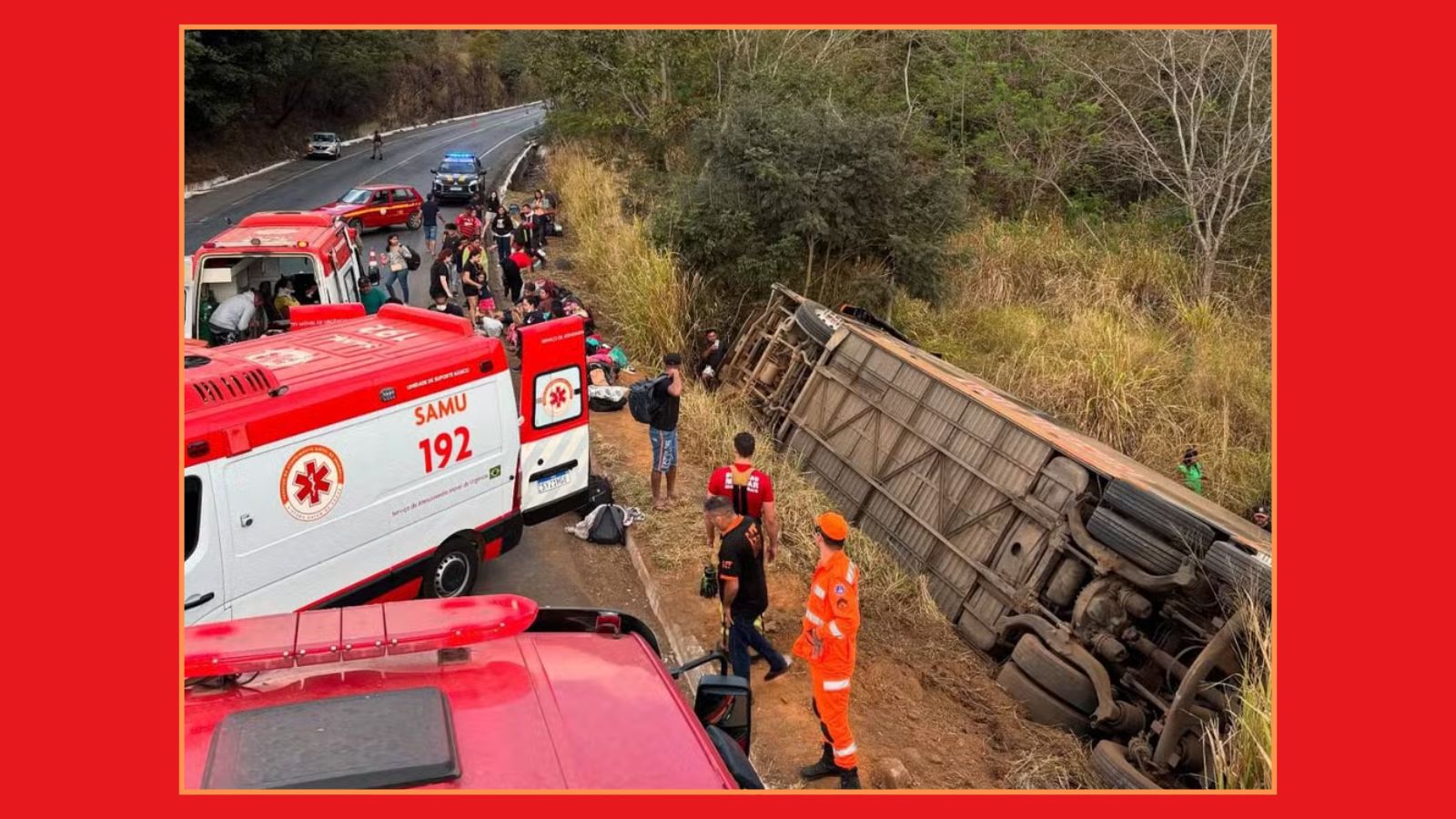 O Corpo de Bombeiros informou que o coletivo levava 48 pessoas, incluindo dois motoristas. O que estava conduzindo o veículo relatou que precisou desviar bruscamente para a contramão e acabou tombando às margens da rodovia ao tentar evitar uma colisão com um carro que atravessou na sua frente.