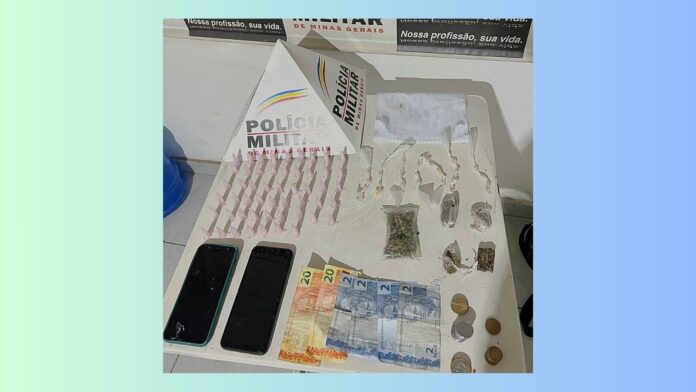 No interior da casa, foram apreendidos 52 pinos de cocaína, 28 pedras de crack, quatro porções de maconha — uma delas de tamanho maior —, dois celulares, um caderno de anotações, câmeras de monitoramento e R$ 59,20 em dinheiro.