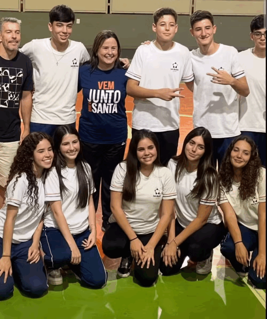 Professora Soraya Tatiana com alunos do Colégio Santa Marcelina. — Foto: Divulgação Colégio Santa Marcelina