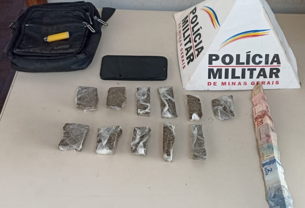 Durante as buscas, os policiais localizaram, em uma bolsa que ele carregava, 11 porções grandes de maconha, R$ 89 em dinheiro e um celular iPhone.