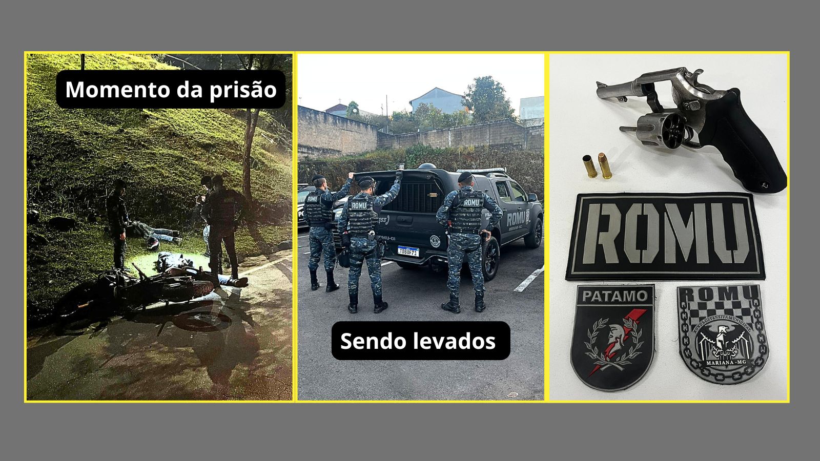 A Polícia Municipal de Mariana, por meio da Romu (Ronda Ostensiva Municipal), realizou a prisão de dois indivíduos, na nadrugada deste domingo (27/7), após um disparo de arma de fogo no distrito de Padre Viegas.