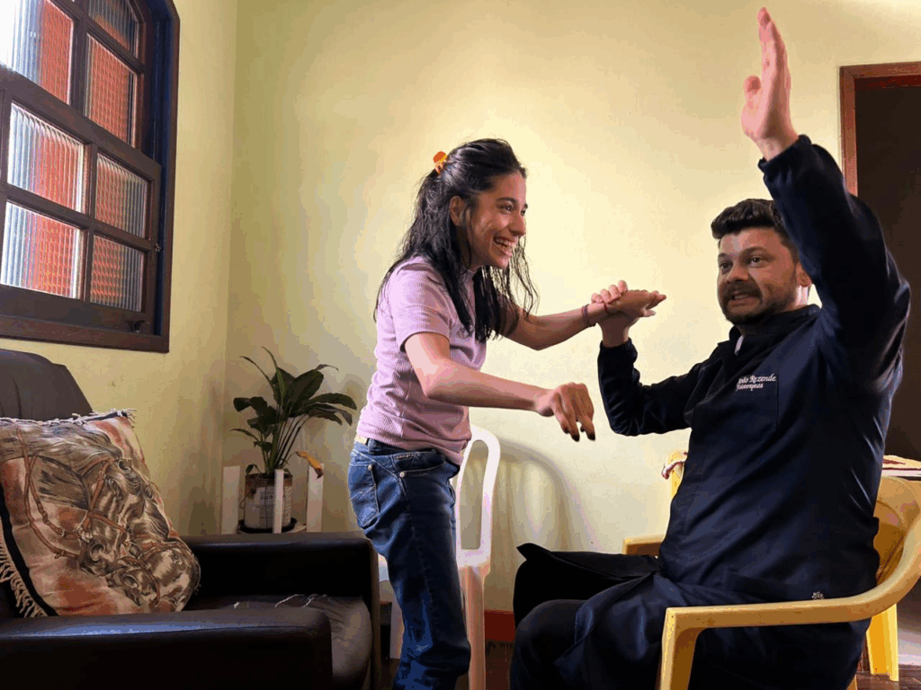 Ela relata avanços significativos no tratamento. “A evolução é nítida. Tenho mais controle de tronco, consigo ficar em pé sozinha e agora estou treinando para me levantar sozinha também”, conta. Toda segunda e quarta, o compromisso dela é com a saúde. “São os dias que sinto o meu corpo mais relaxado”.